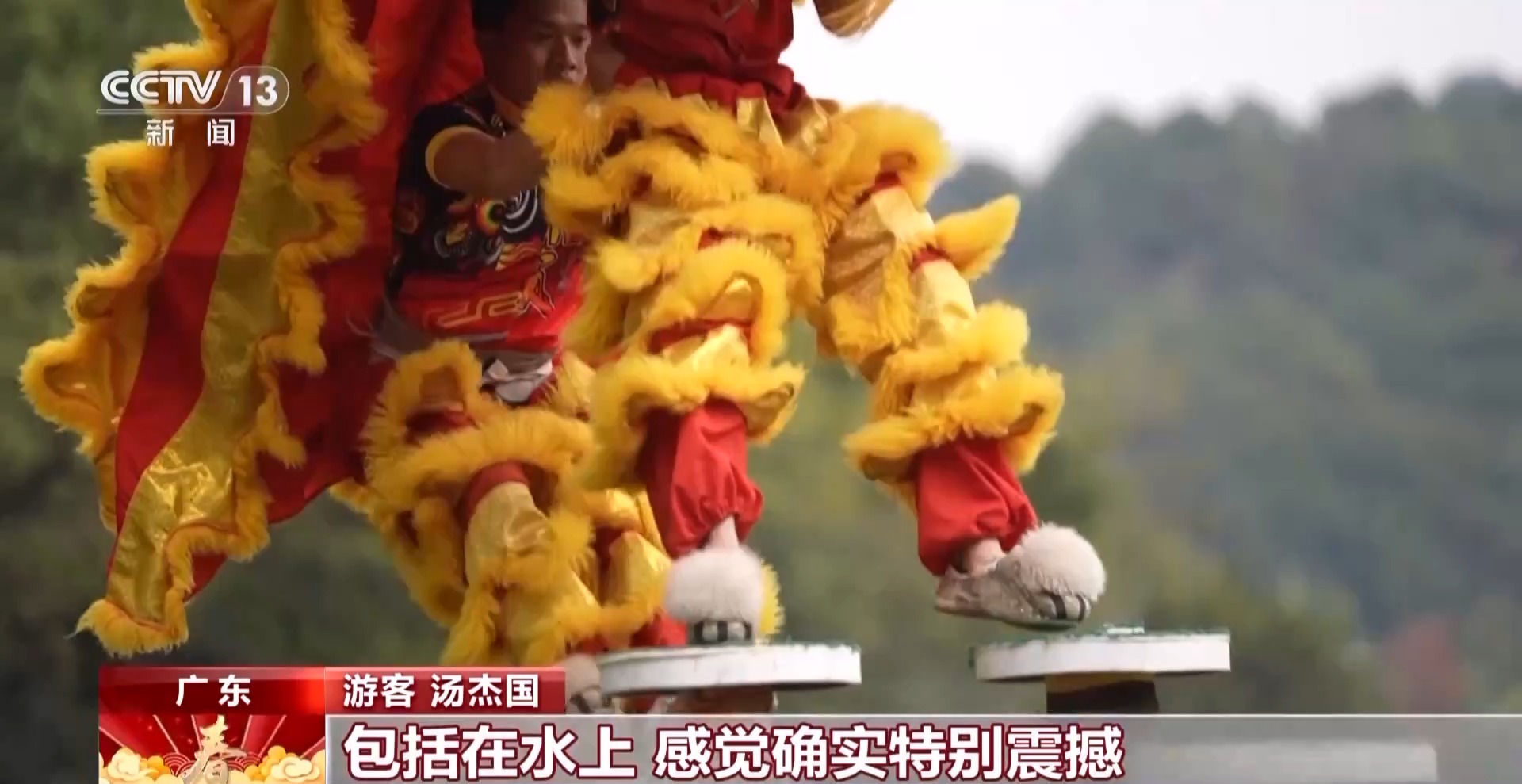 游客 汤杰国:我的家乡在河西走廊甘肃张掖。现场看狮子这种闪转腾挪,包括在水上,感觉确实特别震撼,我觉得这就是中华民族精神的传承,特别厉害。