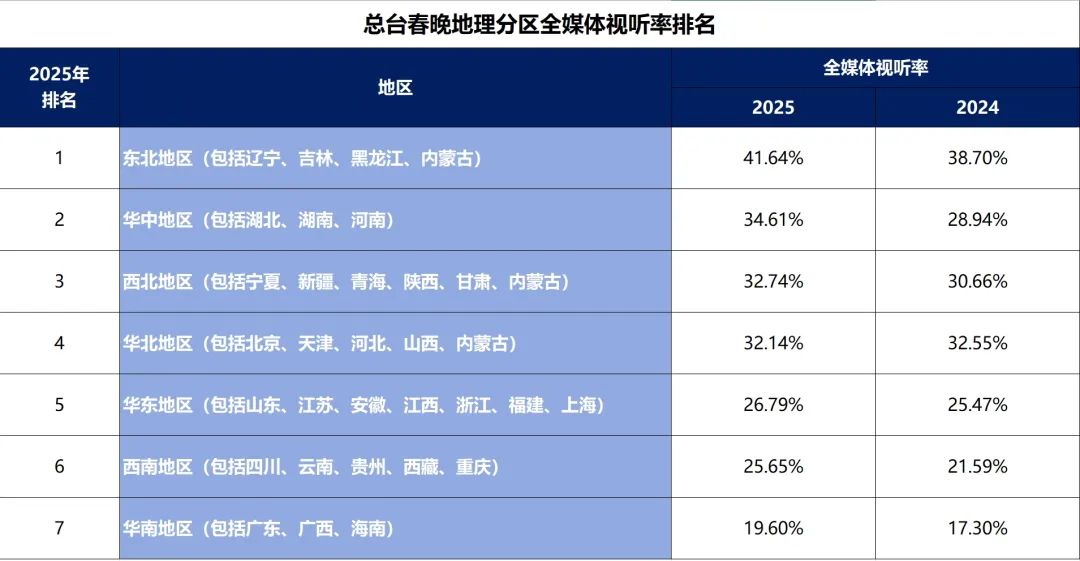 历史性变化!2025总台春晚视听率公布 南方多省份大超全国平均水平