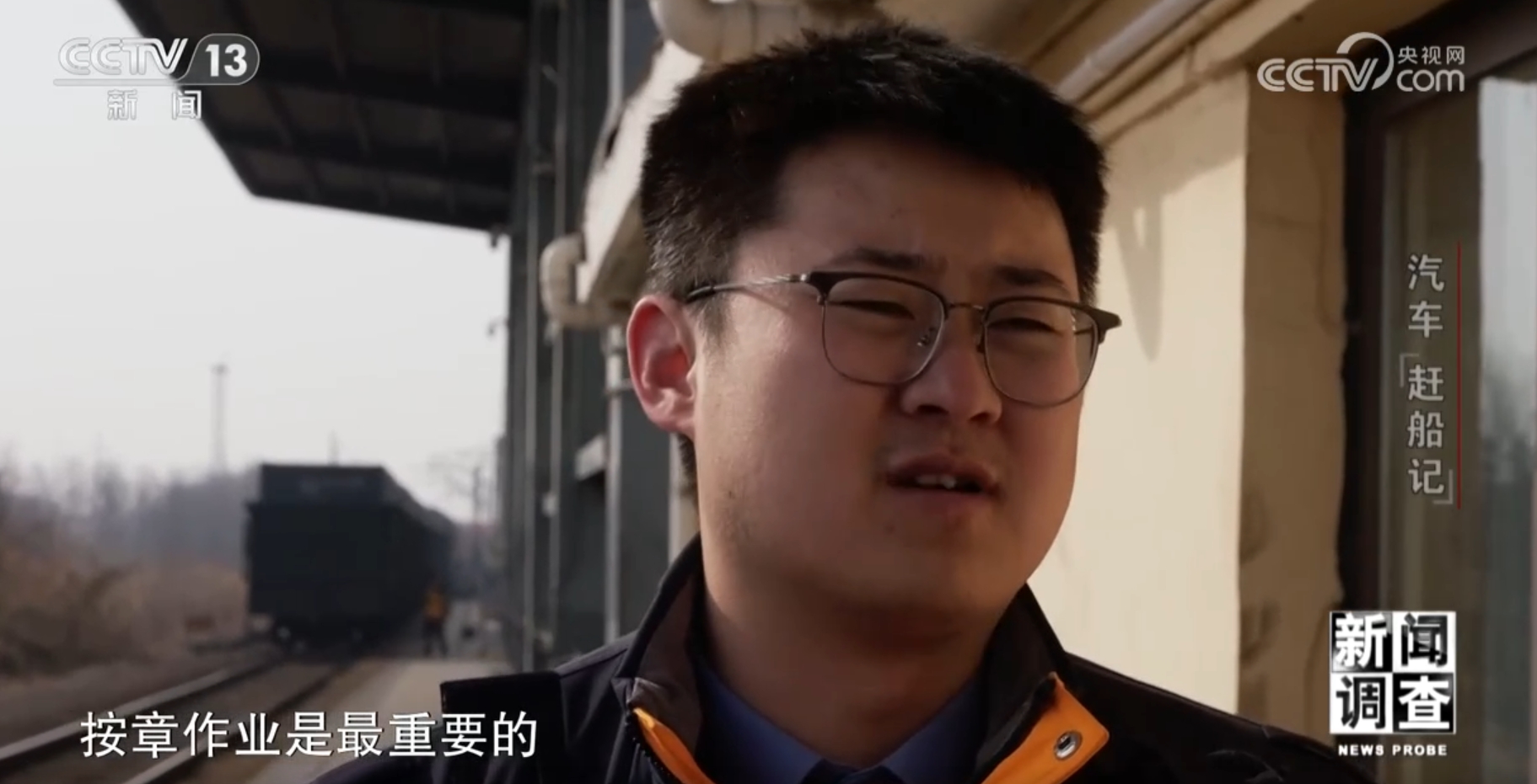 国铁济南局青岛车务段黄岛站连结员 徐延林:车送到位,我们的这一环工作就结束了,下一步就是老孟,他们负责卸车再装箱,然后再集港。我把接力棒交给他了,后面全看他怎么组织,把这票货赶上船,这个任务是算圆满完成了,再看下一个任务又等着又来了。