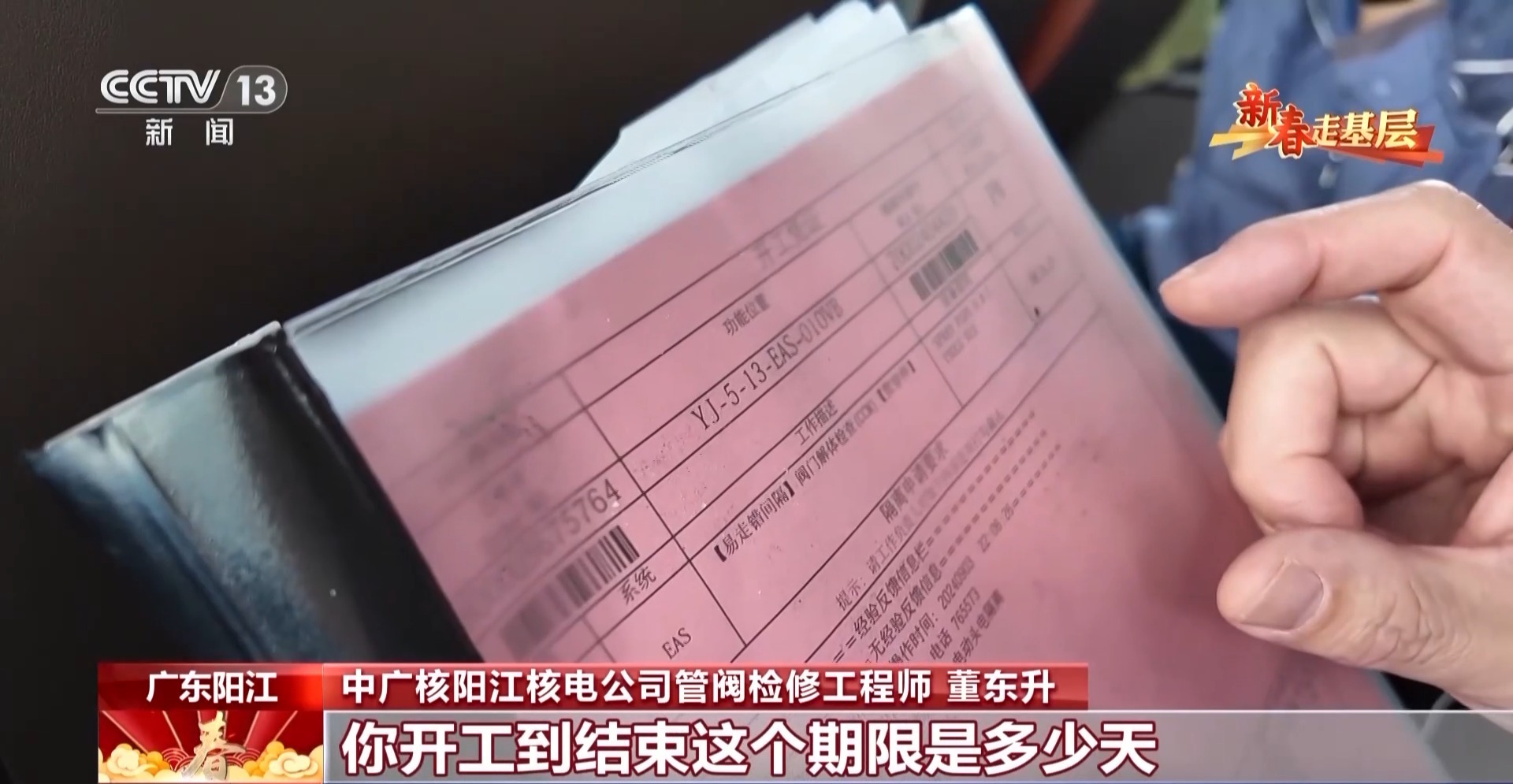 中广核阳江核电公司管阀检修工程师 董东升:这个票就是我们的开工凭证,开工到结束期限是多少天,会在这里面体现,所以我们就严格按照计划和期限严格执行工作。在规定时间没检修完,可能会导致后面整个的其他的设备都没法开展。压力还是很大的。