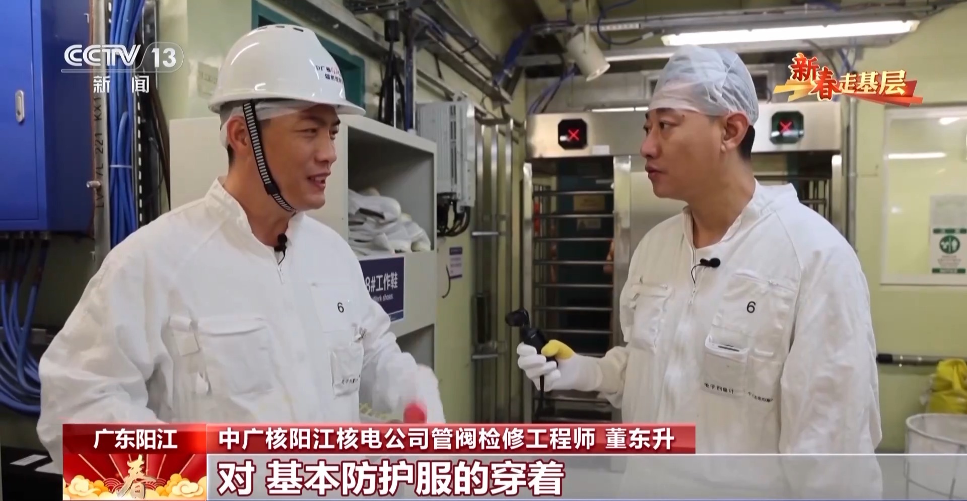 中广核阳江核电公司管阀检修工程师 董东升:我们现在就完成基本防护服的穿着。控制区里边没有洗手间的,大家如果说需要上洗手间,要提前出控制区。