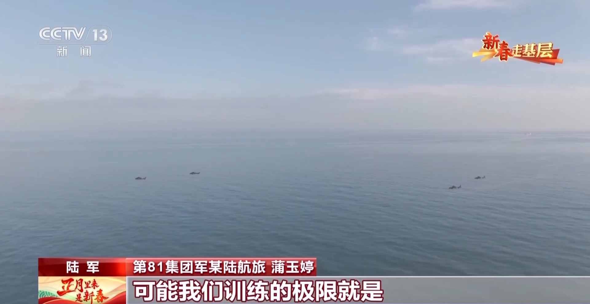 第81集团军某陆航旅 蒲玉婷:大家都在充实自己,在锻炼自己。我们训练的极限开始就可能是距海海面50米、30米、10米,然后突破自己到5~8米。有时碰见海浪大的时候,海浪会卷,感觉整个海要把人往里卷。首先突破自己心理。