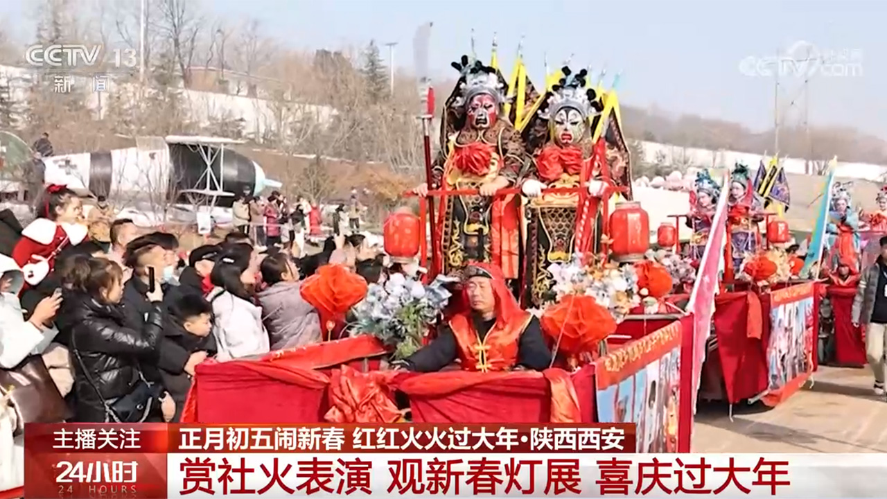这几天,白鹿原影视城社火展演人气很旺。高跷表演,惊险又不失趣味;装饰精美的平桌花车缓缓前行,车上演绎着经典的故事场景;还有财神一路派送祝福,喜庆的氛围感染着现场游客们。