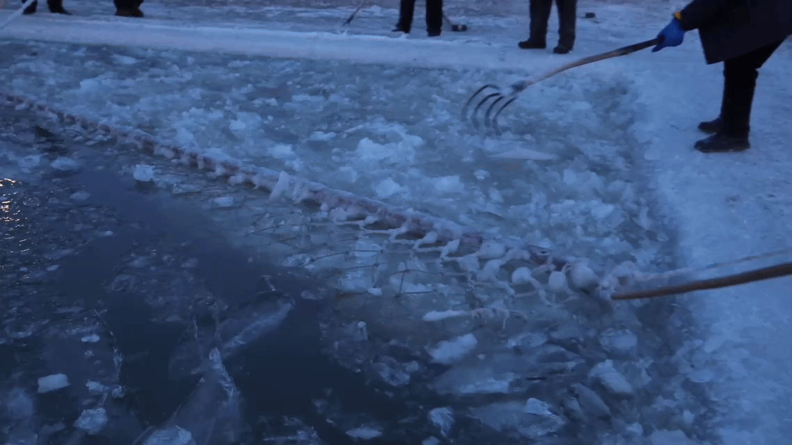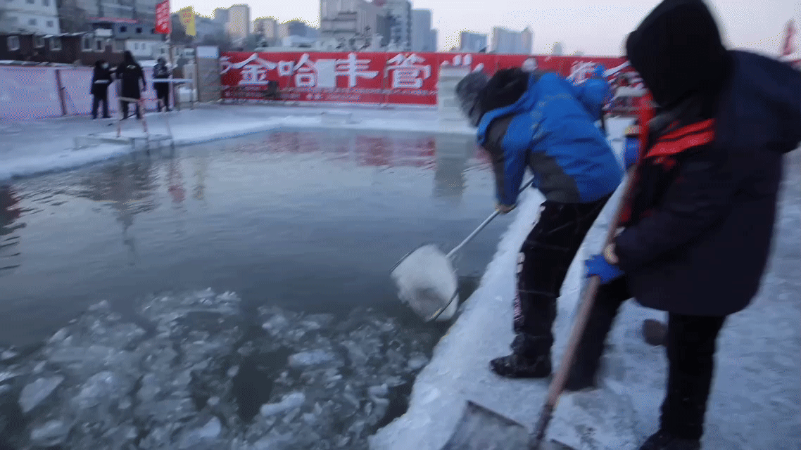 打捞冰块、运送……