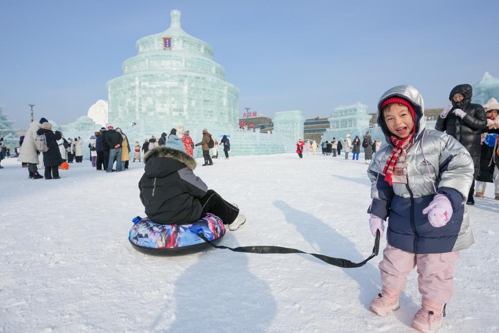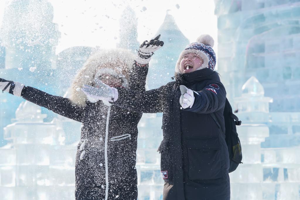 2024年1月5日,游客在哈尔滨冰雪大世界游玩。