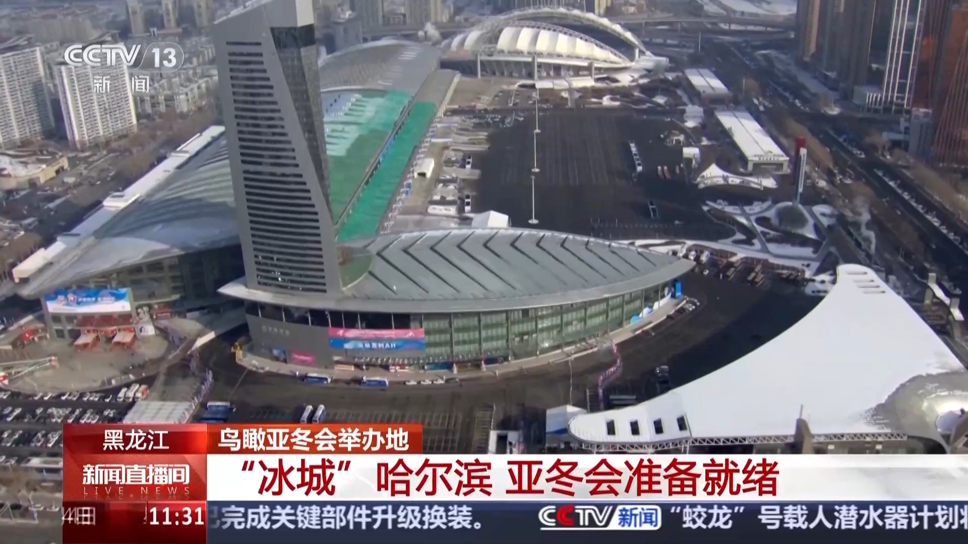 此刻我们正飞在哈尔滨国际会展中心的上空,这里是第九届亚冬会哈尔滨赛区的核心区域。大家可以看到,这片区域汇聚了第九届亚冬会冰上项目的运动员村和主媒体中心。位于市中心的运动员村,现在已经开村,在比赛期间将迎接来自20多个国家和地区的近千名参赛人员。运动员村内设施齐全,分为运行区、居住区和交通区,设有清真餐厅、运动员餐厅、医疗诊所、健身中心等,为运动员和随队官员提供全方位的服务保障。而主媒体中心则于1月31日正式启动运行,分为主新闻中心和国际广播中心两部分。值得一提的是,此次亚冬会首次实现了单语种采访、多语种分发的功能,进一步提升了媒体服务的国际化水平。本届亚冬会的开幕式也将在这里举行。