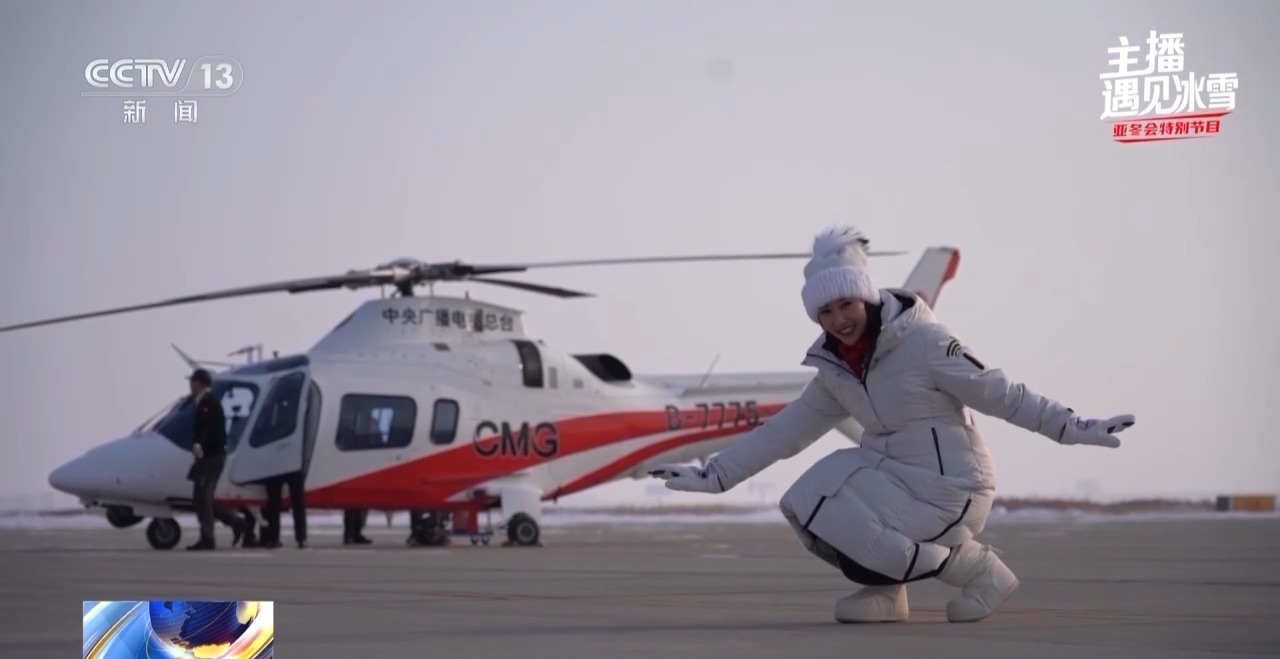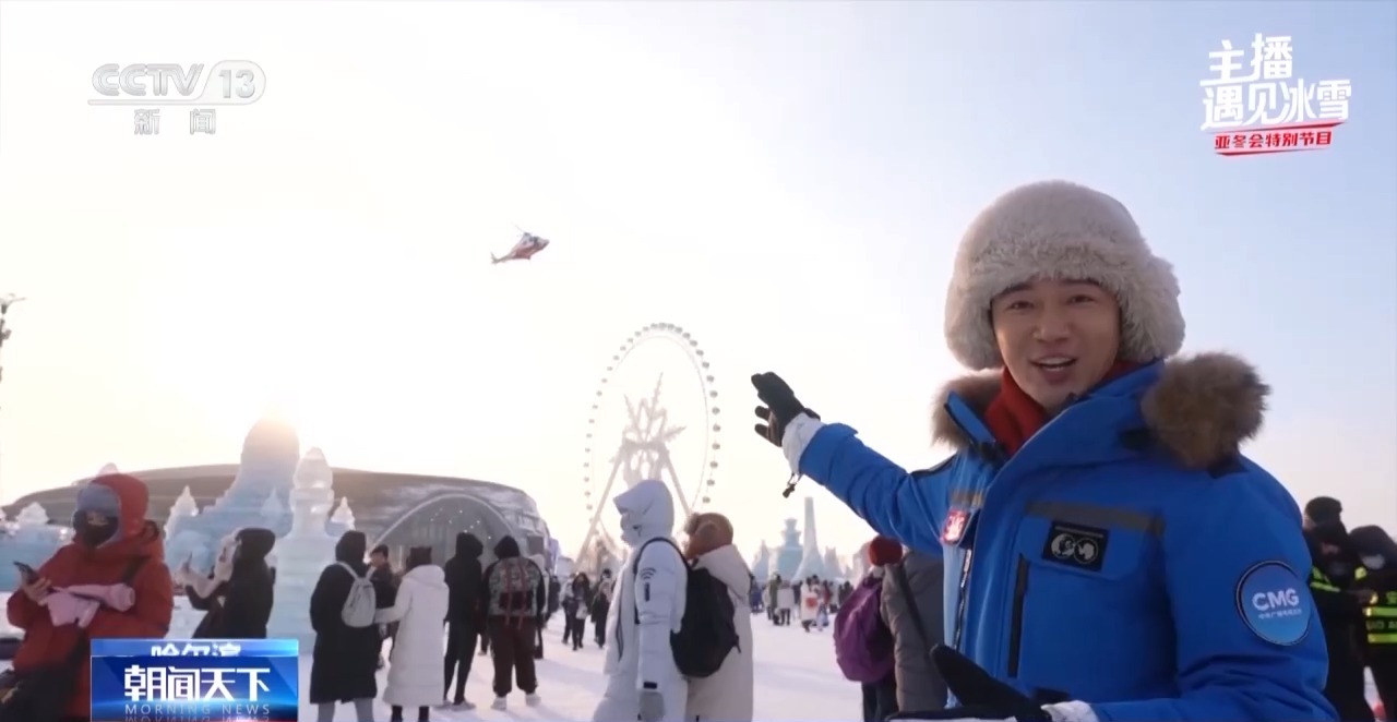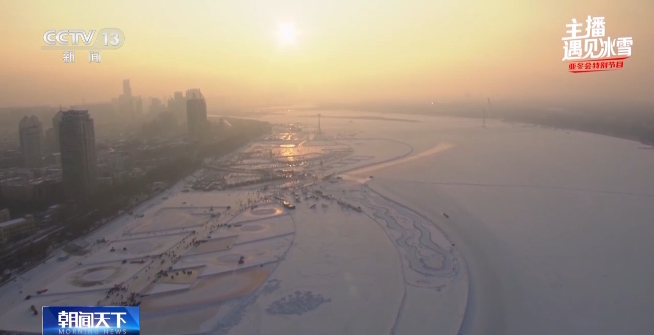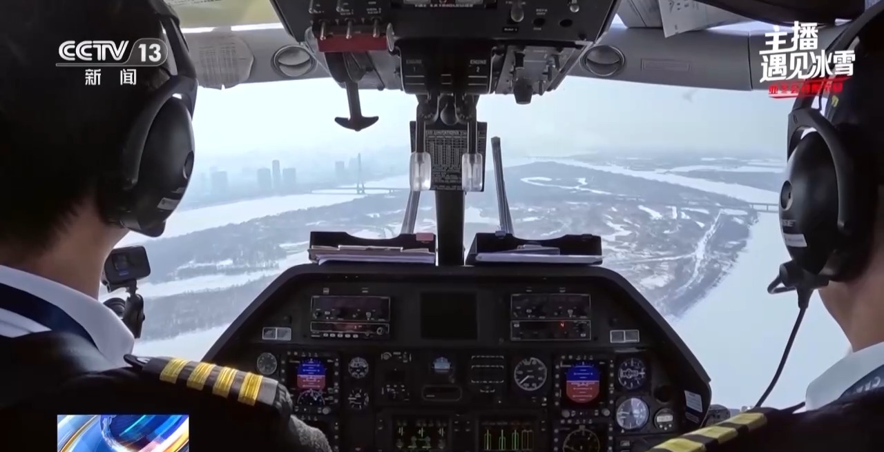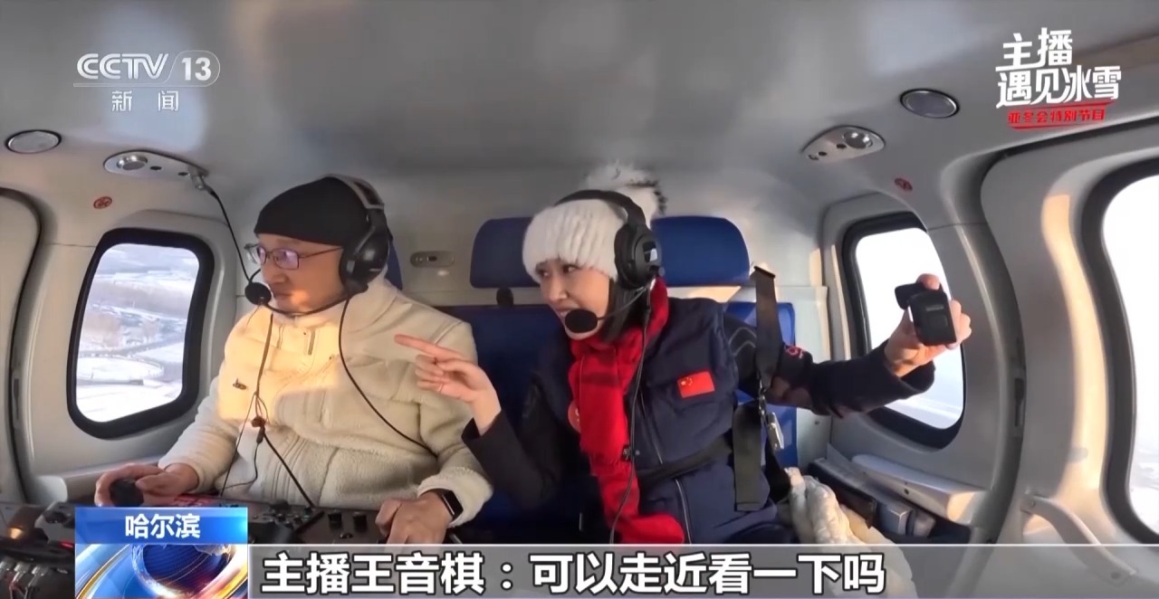 主播 王音棋:哈尔滨。我来了,总台来了。看这是我们总台的直升机。今天我将会带大家从空中俯瞰这座冰城,感受冰天雪地的魅力,亚冬会的激情。