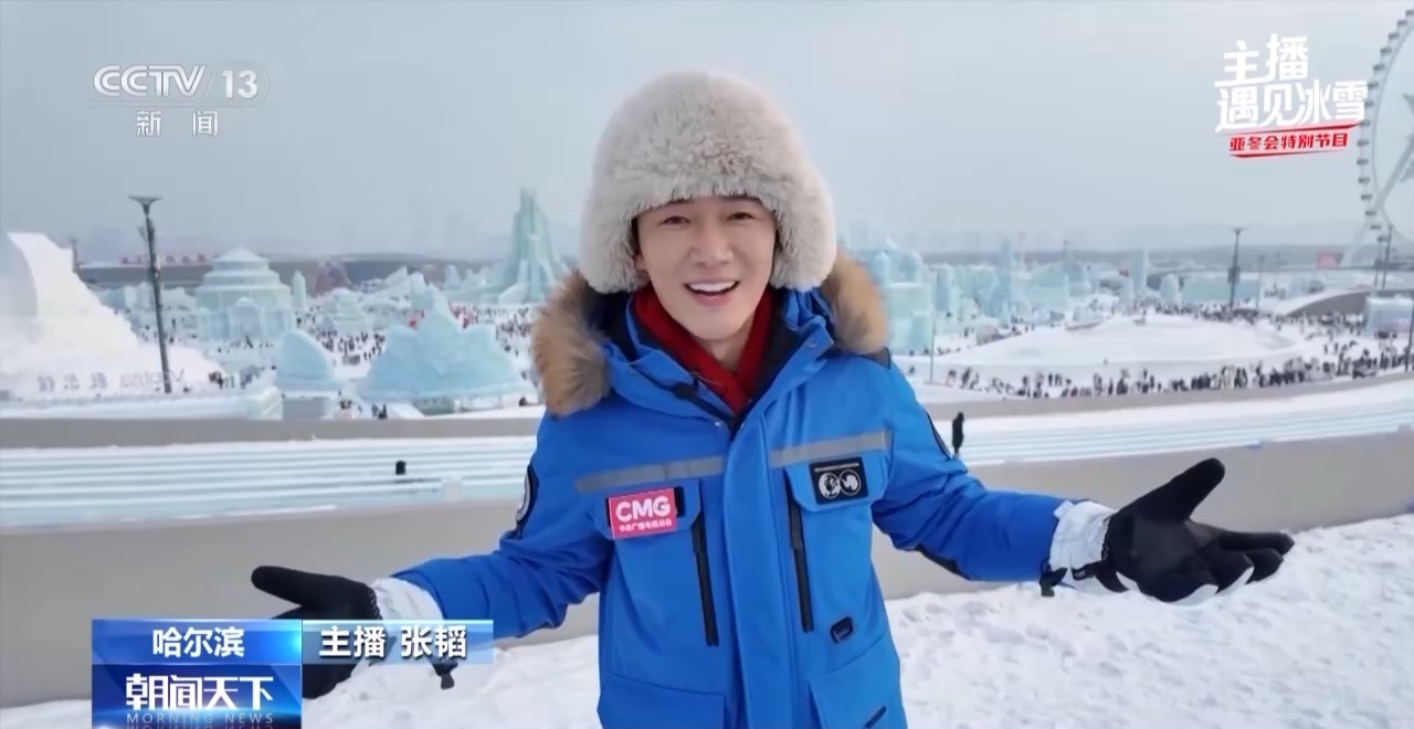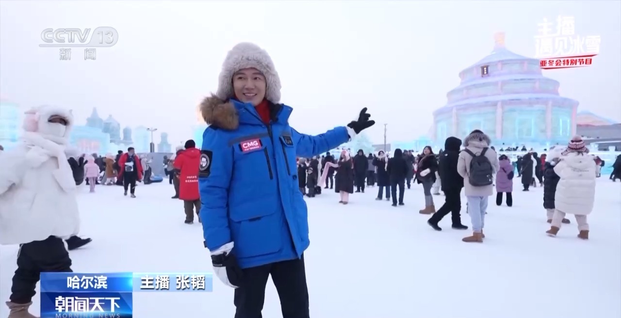 主播 张韬:亚冬会马上就要来了,哈尔滨正以它无与伦比的热情和壮丽的冰雪景观欢迎来自亚洲各地的运动健儿以及来自世界各地的游客朋友。我身后就是总台搭建在这里的前方演播室,我和我的同事就将在这里为大家展现激情亚冬会和冰雪带来的无尽活力。