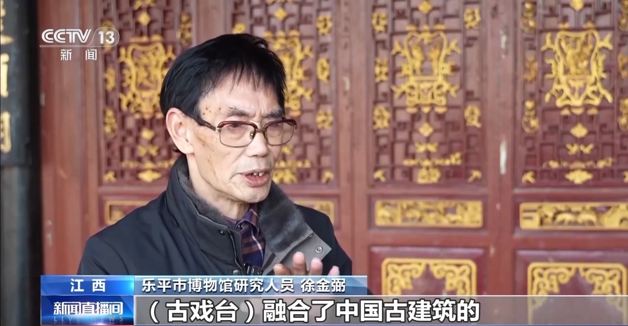 乐平市博物馆研究人员 徐金弼:古戏台融合了中国古建筑的基本重要的元素,雕工精湛,把徽派雕刻艺术全部集在一起。