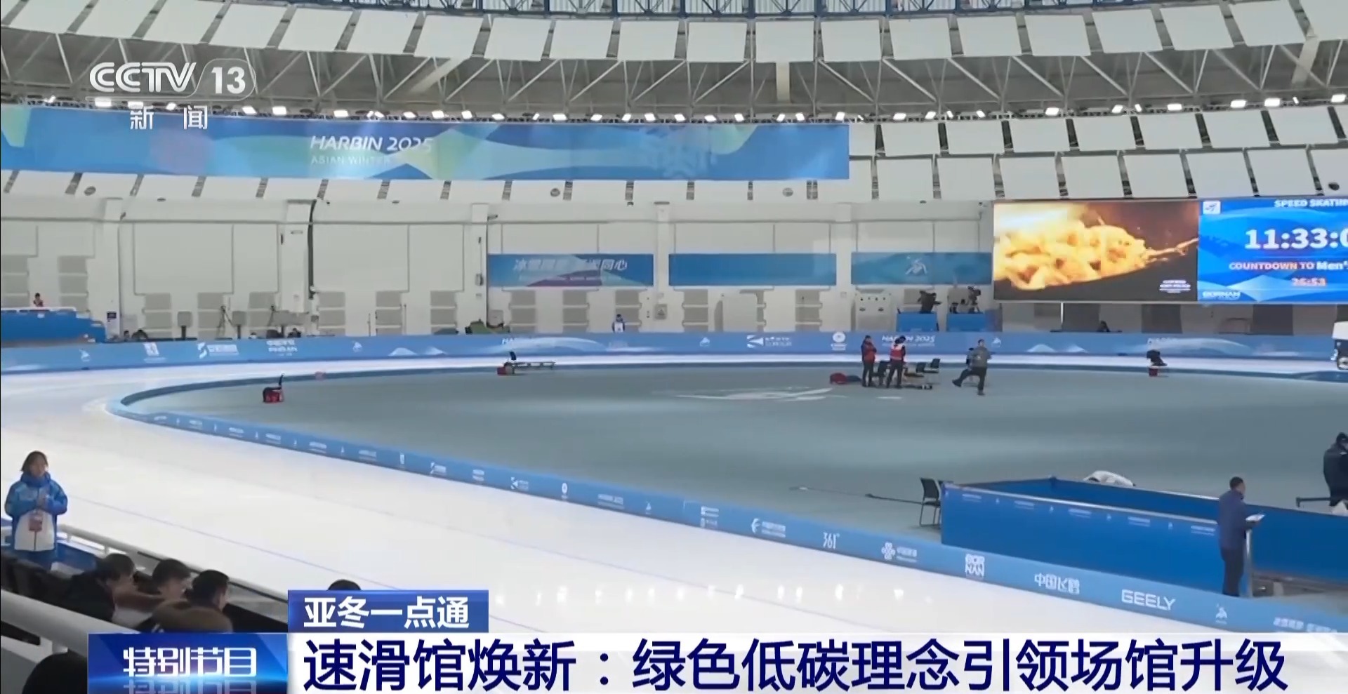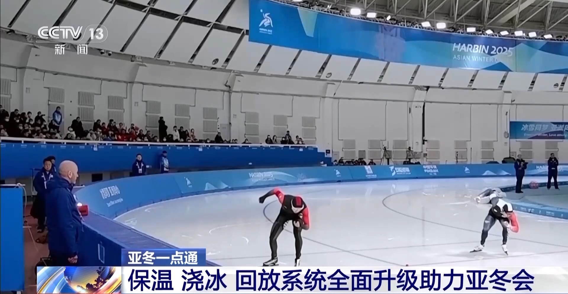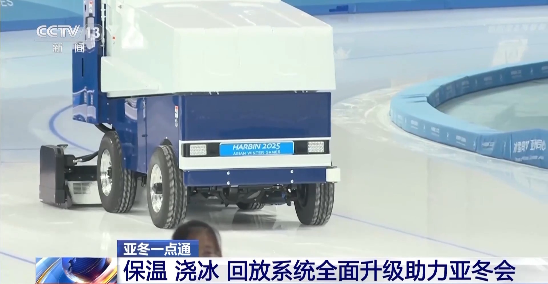 此外,运动员在激烈的比赛中,冰刀会破坏冰面。所以,在比赛间隙时就要进行浇冰,将滑道的平整度、温度调整到最好状态。本届亚冬会,场馆中的浇冰车更新为了先进的电子浇冰车,能把水均匀平整地浇在冰面上,随后冰层下面的冷排设备会将低温传导到冰面上,让水快速冰冻,从而起到修复冰场的作用。浇冰的效率和精细化程度更高,保障了各国运动员们能滑出好成绩。