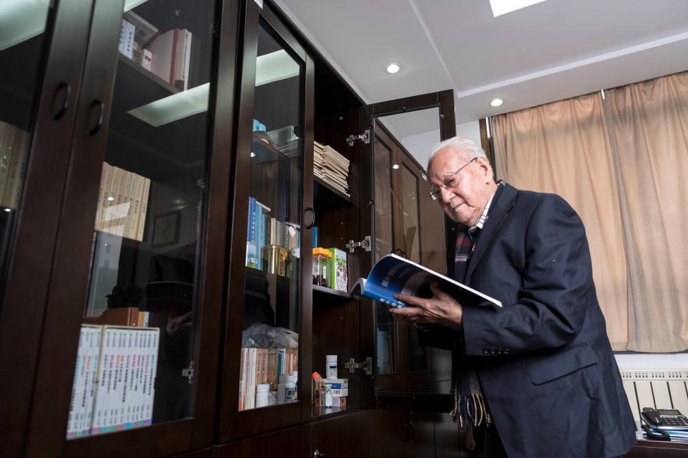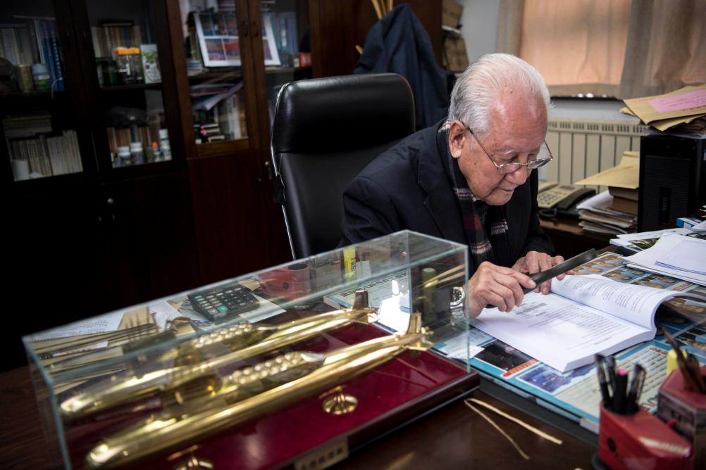 黄旭华院士在办公室查阅资料(2017年12月15日摄)。1970年12月26日,中国第一艘核潜艇下水。当“蓝色巨鲸”奔向大海之际,在场的人无不热血沸腾,他更是喜极而泣。新华社记者熊琦摄