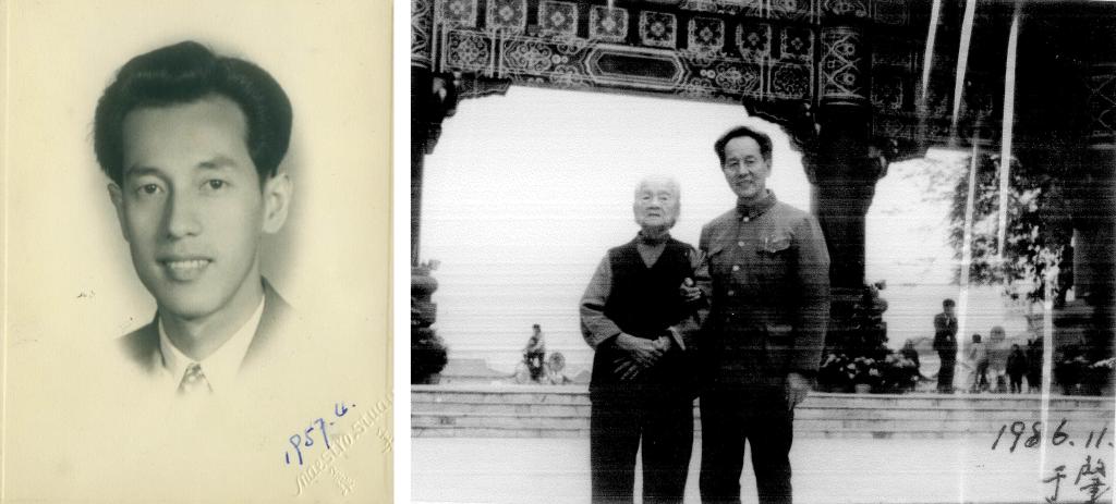 这是一张拼版照片:左图为1957年春拍摄的黄旭华;右图为1986年冬拍摄的黄旭华与母亲的合影。新华社发
