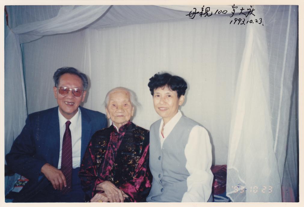 黄旭华(左一)在母亲一百岁大寿时合影(资料照片,1993年10月23日摄)。新华社记者熊琦摄