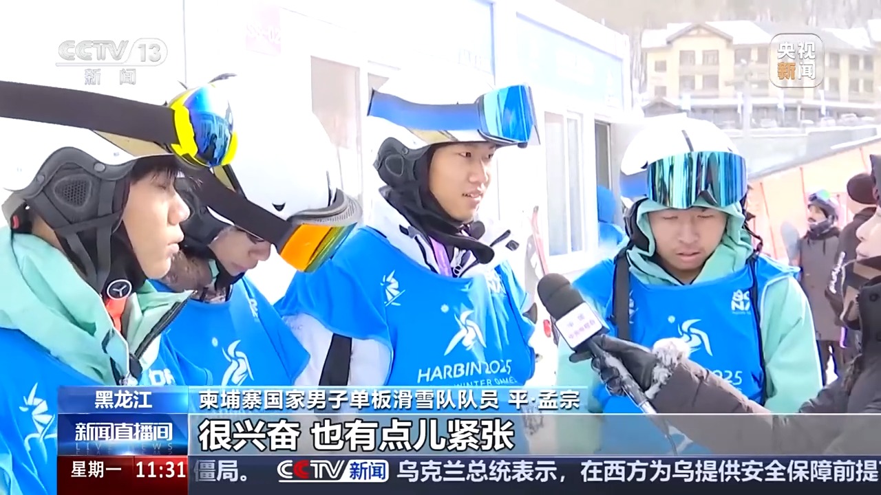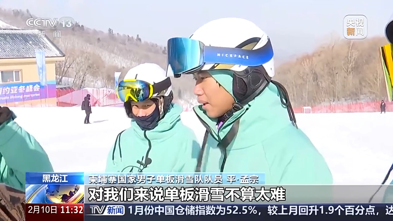 柬埔寨国家男子单板滑雪队队员 平·孟宗:很兴奋,也有点儿紧张,因为这是我们第一次完成像亚冬会这样的大型赛事。