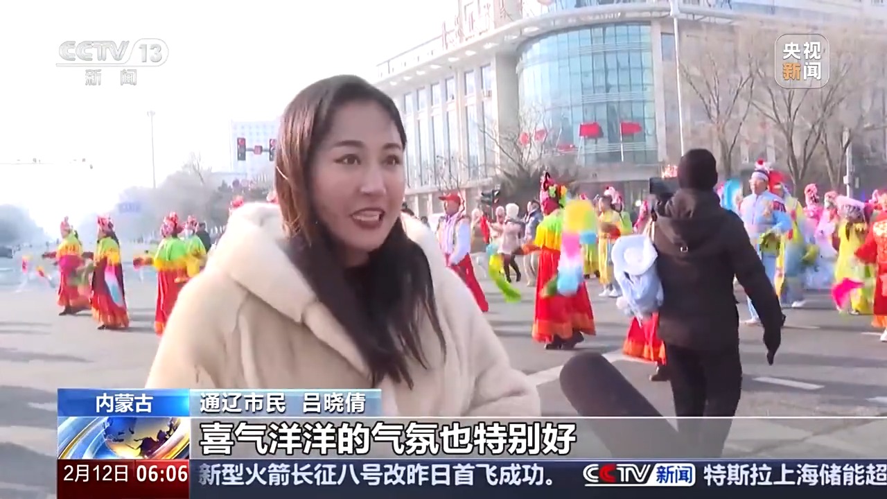 通辽市市民 吕晓倩:这次秧歌表演真的太棒了,喜气洋洋的,气氛也特别好。