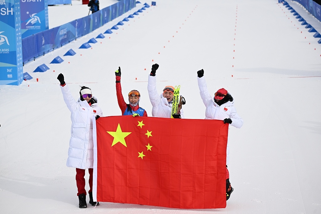 △2025年2月13日,哈尔滨亚冬会冬季两项女子4×6公里接力:中国队夺金。