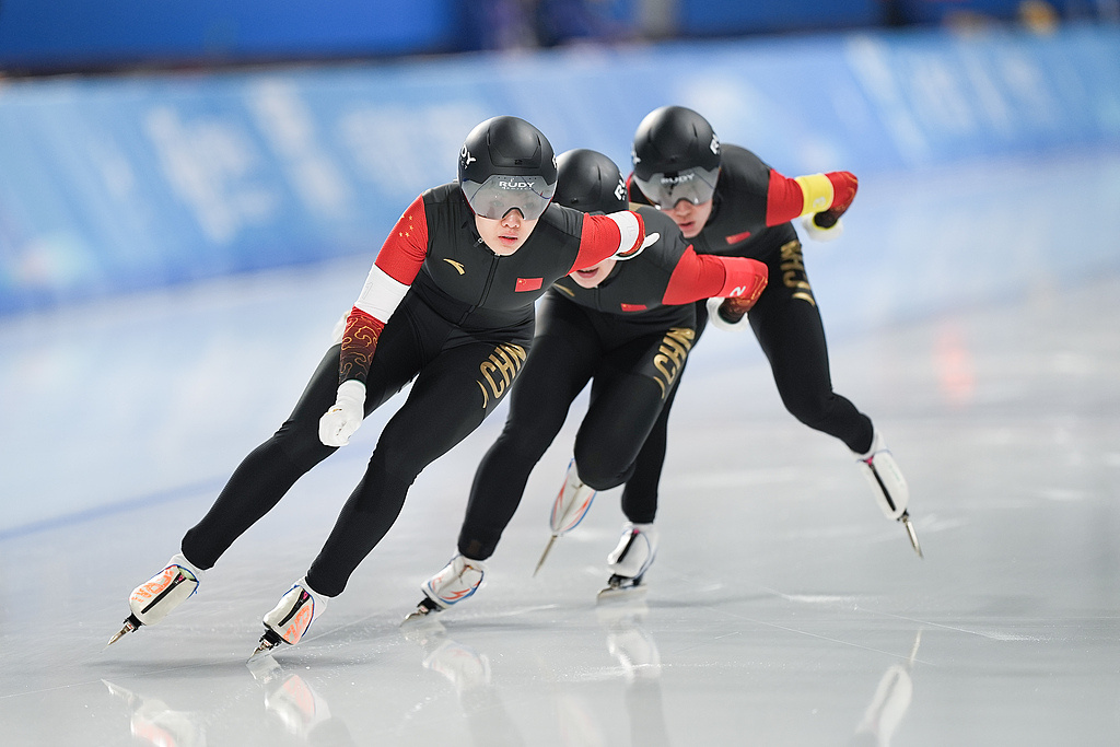 △2025年2月9日,在哈尔滨亚冬会速度滑冰女子短距离团体追逐决赛中,中国队摘得银牌。