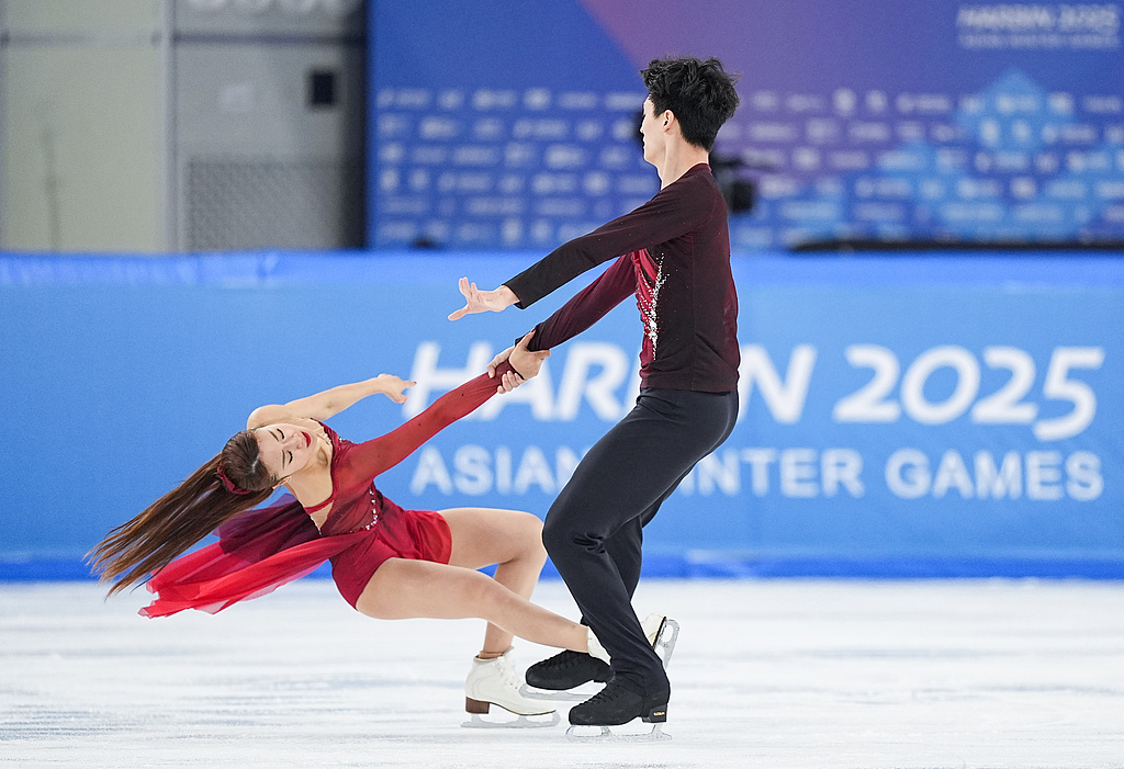 △2025年2月12日,哈尔滨亚冬会花样滑冰冰上舞蹈自由舞,任俊霏/邢珈宁摘银。