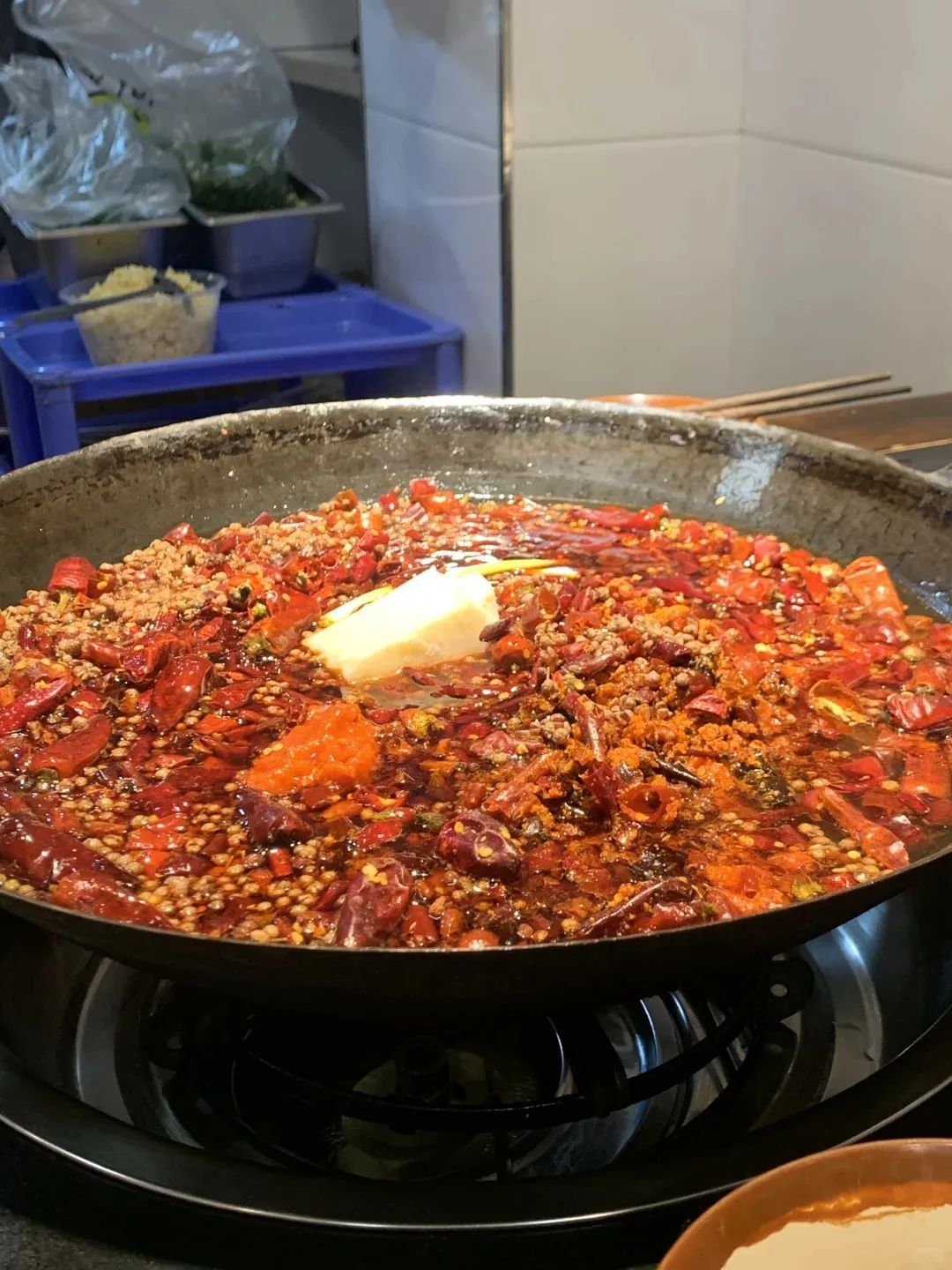 还有人喜欢自己在家炒料做锅底,牛油、菜油,二荆条、花椒、豆瓣酱,再加上数十种香料慢慢翻炒上几十分钟,自己炒的锅底香过所有街边店。