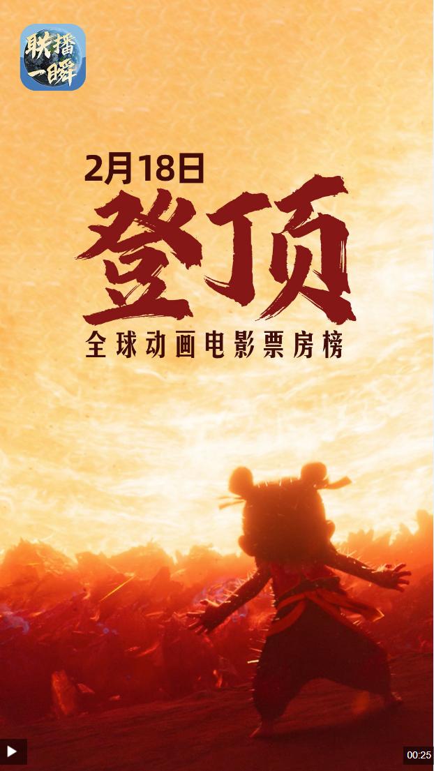 2月18日,《哪吒之魔童闹海》登顶全球动画电影票房榜。中国动画电影哪吒形象,每次“重生”引发无数共鸣。联播一瞬带你看哪吒踏出一条冠军路!