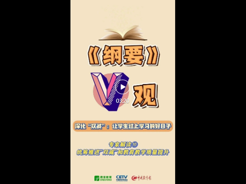 《教育强国建设规划纲要(2024—2035年)》(以下简称《纲要》)日前正式发布,明确了38条重点任务。教育部新媒体矩阵推出“解码《纲要》”栏目逐一解读。今天,解码第十条“统筹推进‘双减’和教育教学质量提升”,一起来看3个视频——