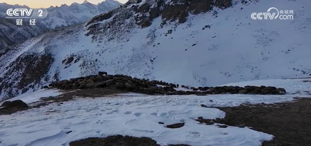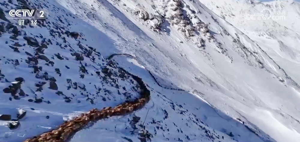 包扎得尔冬牧场位于天山中段,是伊犁河谷最大的冬牧场,平均海拔近3000米,每年有2000多户牧民、30多万头只牲畜在这儿过冬。赛力克阿力他们要跨越大大小小三个达坂,其中海拔3800多米的乔拉克阿苏达坂是转场路上最高也是最难走的一段。这里山高路陡、寒风刺骨,羊群和马群在茫茫山野逶迤而行,踏出了一条宽不过一米、弯曲狭窄的牧道。