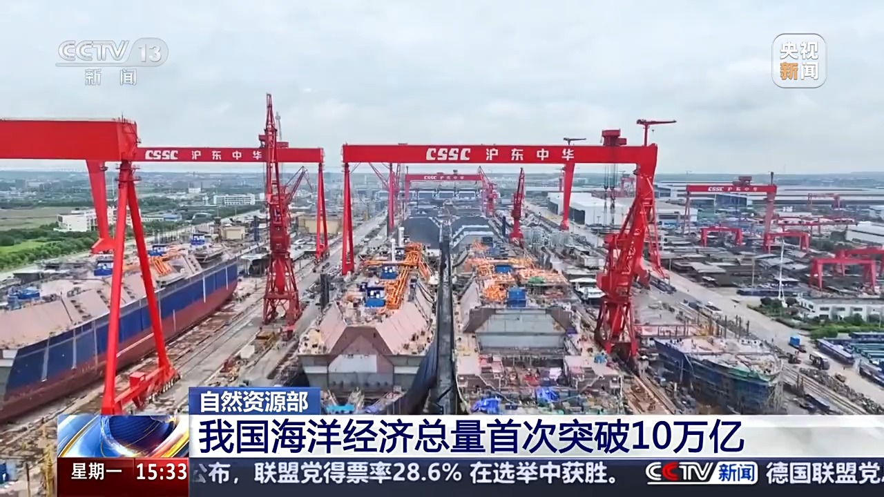 自然资源部今天(24日)发布《2024年中国海洋经济统计公报》,《公报》显示,2024年我国海洋经济总量再上新台阶,首次突破10万亿。