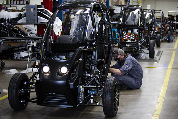 美国俄勒冈州尤金Arcimoto三轮电动多功能车(FUV)工厂。