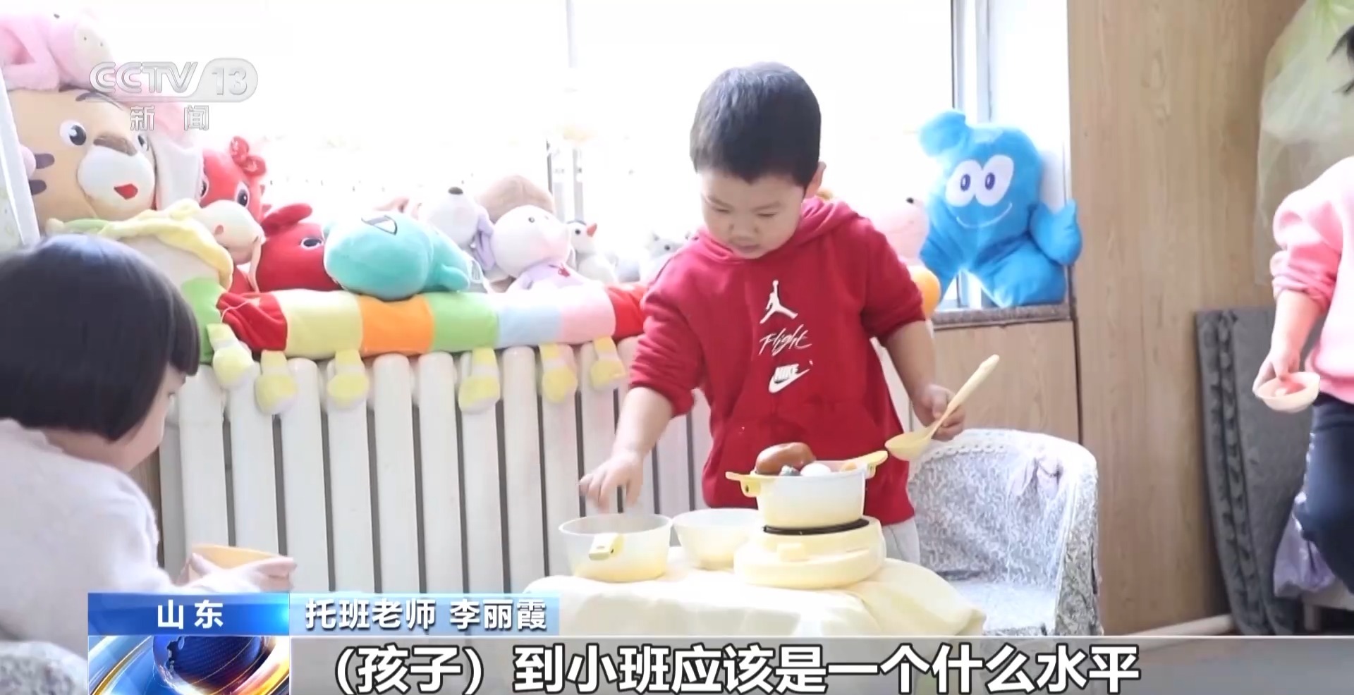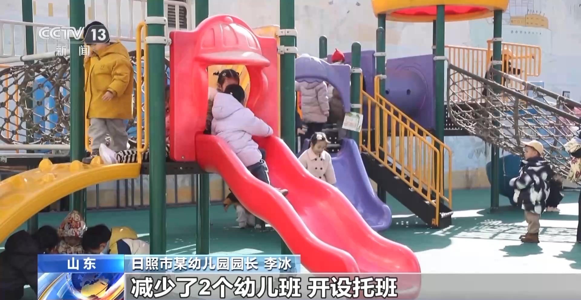 日照市某幼儿园园长 李冰:从2023年开始,我们整合幼儿园校舍、师资等资源,减少了2个幼儿班,开设托班。到去年我们4个园区招收了5个托班,提供100个托位。