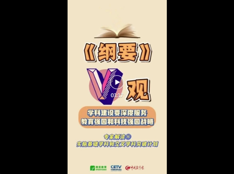 《教育强国建设规划纲要(2024—2035年)》(以下简称《纲要》)日前正式发布,明确了38条重点任务。教育部新媒体矩阵推出“解码《纲要》”栏目逐一解读。今天,解码第十六条“实施基础学科和交叉学科突破计划”,一起来看3个视频——