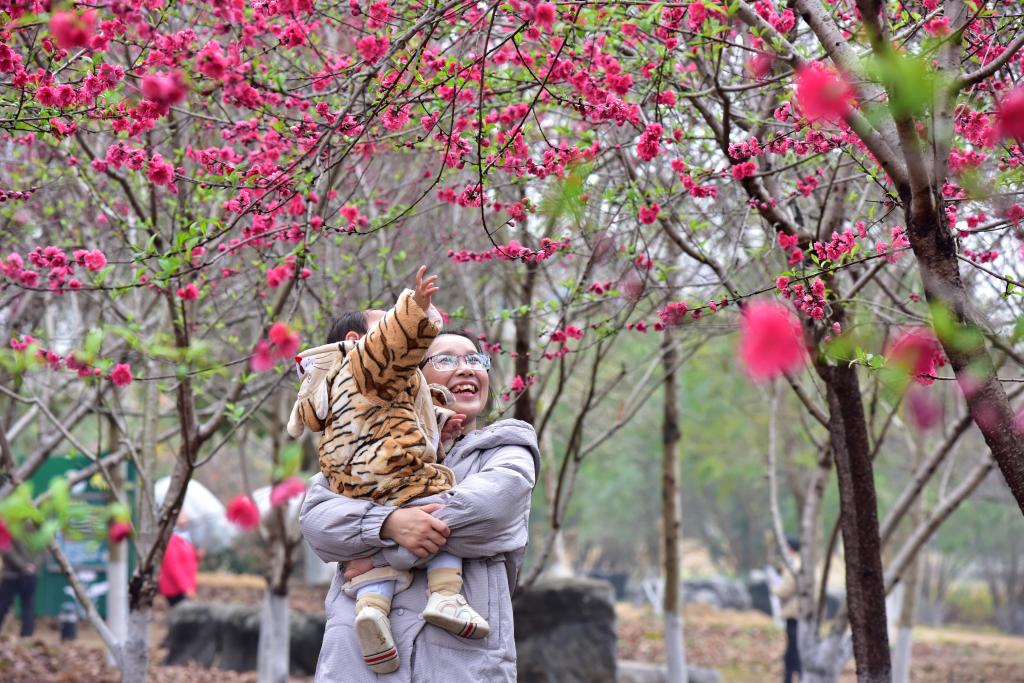 2月27日,游客在广西贺州市爱莲湖公园赏花。春日时节,人们来到户外踏青赏花,乐享美好春光。新华社发(廖祖平 摄)