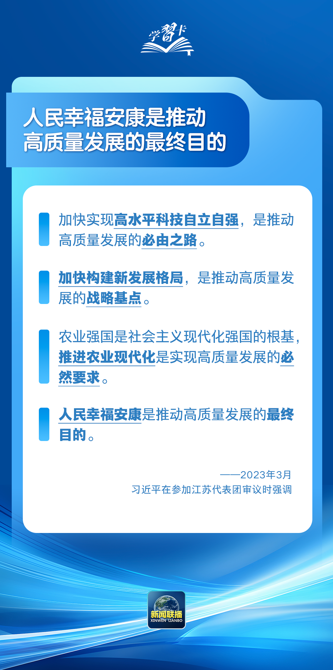 学习卡丨习近平:人民幸福安康是推动高质量发展的最终目的