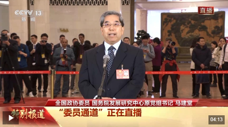 今天(3月4日)下午,全国政协十四届三次会议首场“委员通道”在人民大会堂举行,全国政协委员、国务院发展研究中心原党组书记马建堂接受了记者采访。