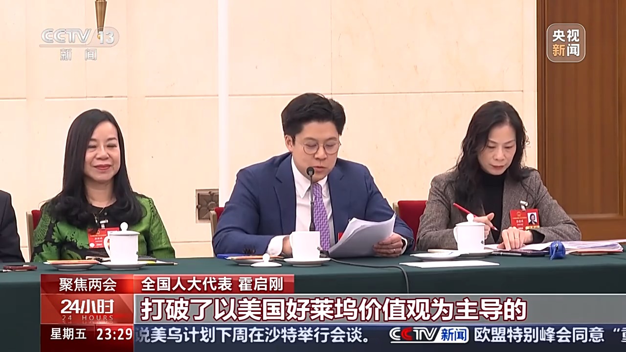 全国人大代表 霍启刚:最近的《哪吒2》更创下票房历史,打破了以美国好莱坞价值观为主导的这种说故事的方式,成功以我们中国的故事和中国的哲学感染世界的观众。我认为香港可以更加用文化+的概念跟理念,在文化产业发展上作出更多的贡献,更以香港国际桥梁和传统优势,实现中国文化抱团出海等,让文化事业和文化产业得以相辅相成,把香港发挥成中华文化产业中的“金融港”和“出口港”。