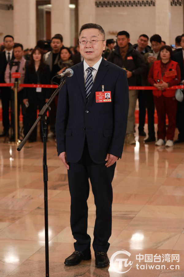 3月8日,第十四届全国人民代表大会第三次会议第二场“代表通道”集中采访活动在北京人民大会堂举行。这是全国人大代表马新强接受媒体采访。(中国台湾网记者 李宁 摄)