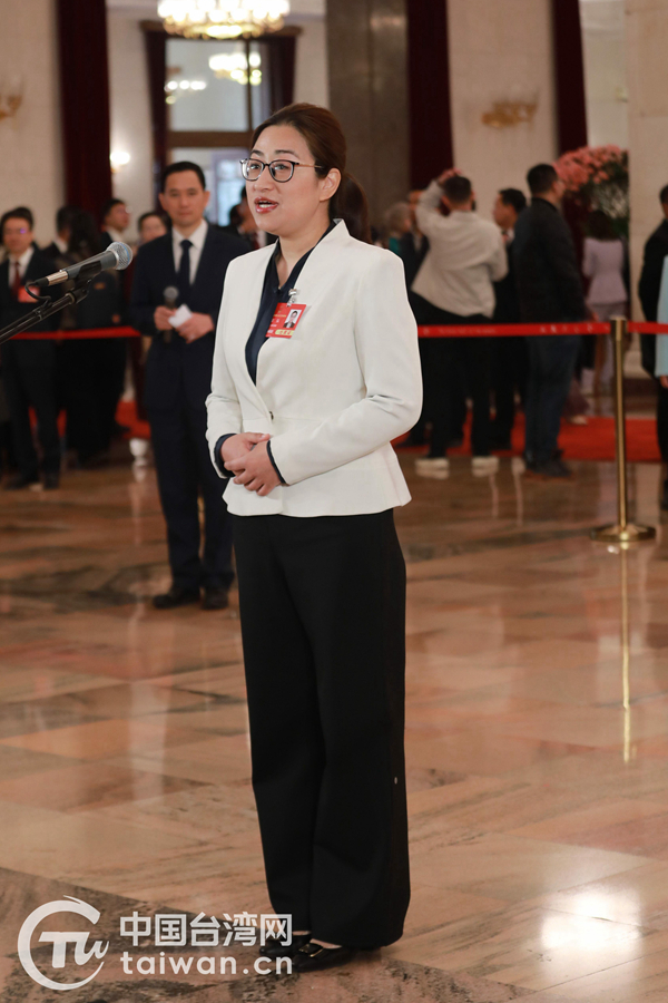 3月8日,第十四届全国人民代表大会第三次会议第二场“代表通道”集中采访活动在北京人民大会堂举行。这是全国人大代表杨宝玲接受媒体采访。(中国台湾网记者 李宁 摄)