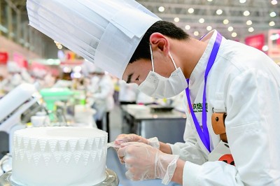 安徽省首届职业院校在校生创意蛋糕技术大赛比赛现场。袁兵摄/光明图片