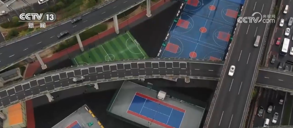 原本普通的河边广场变成了运动公园,除了休闲运动,这里也是遛娃的好去处。而另一边城市的车水马龙间,也在上演一场桥下空间焕新记。