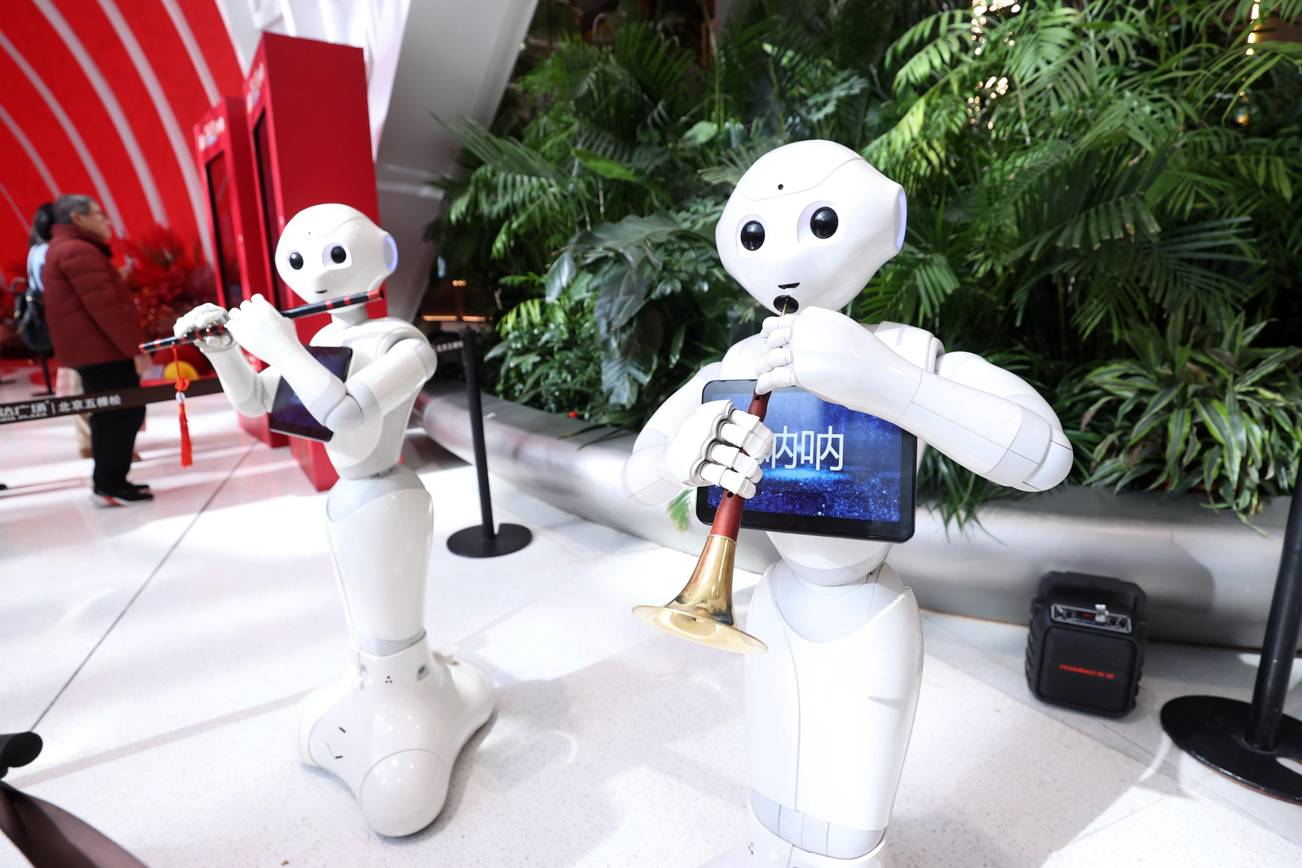 △2025年2月2日,机器人在北京海淀新春科技庙会上表演。