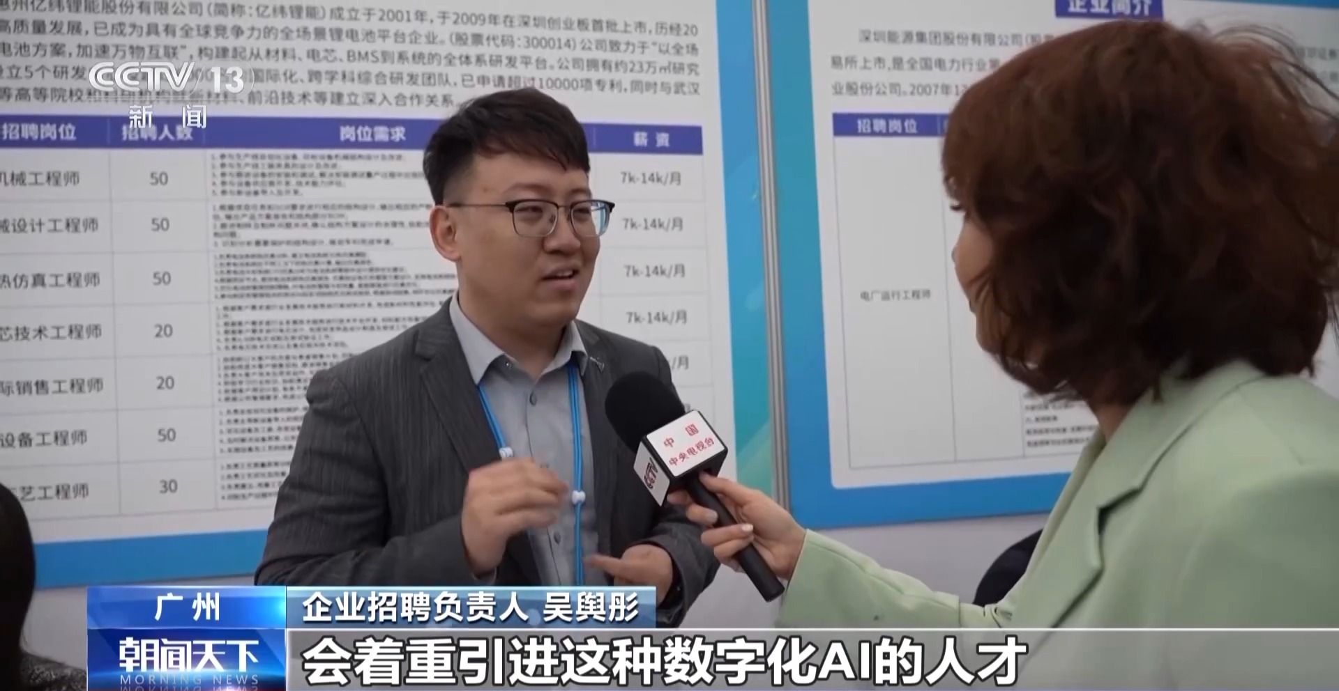 总台央视记者 唐蕾:在广州市琶洲广交会展馆,和往年比,今年春招规模扩大了近3倍,在这里,不仅有一站式的招聘会,还有人工智能与机器人专场项目对接会等多种人才对接活动。