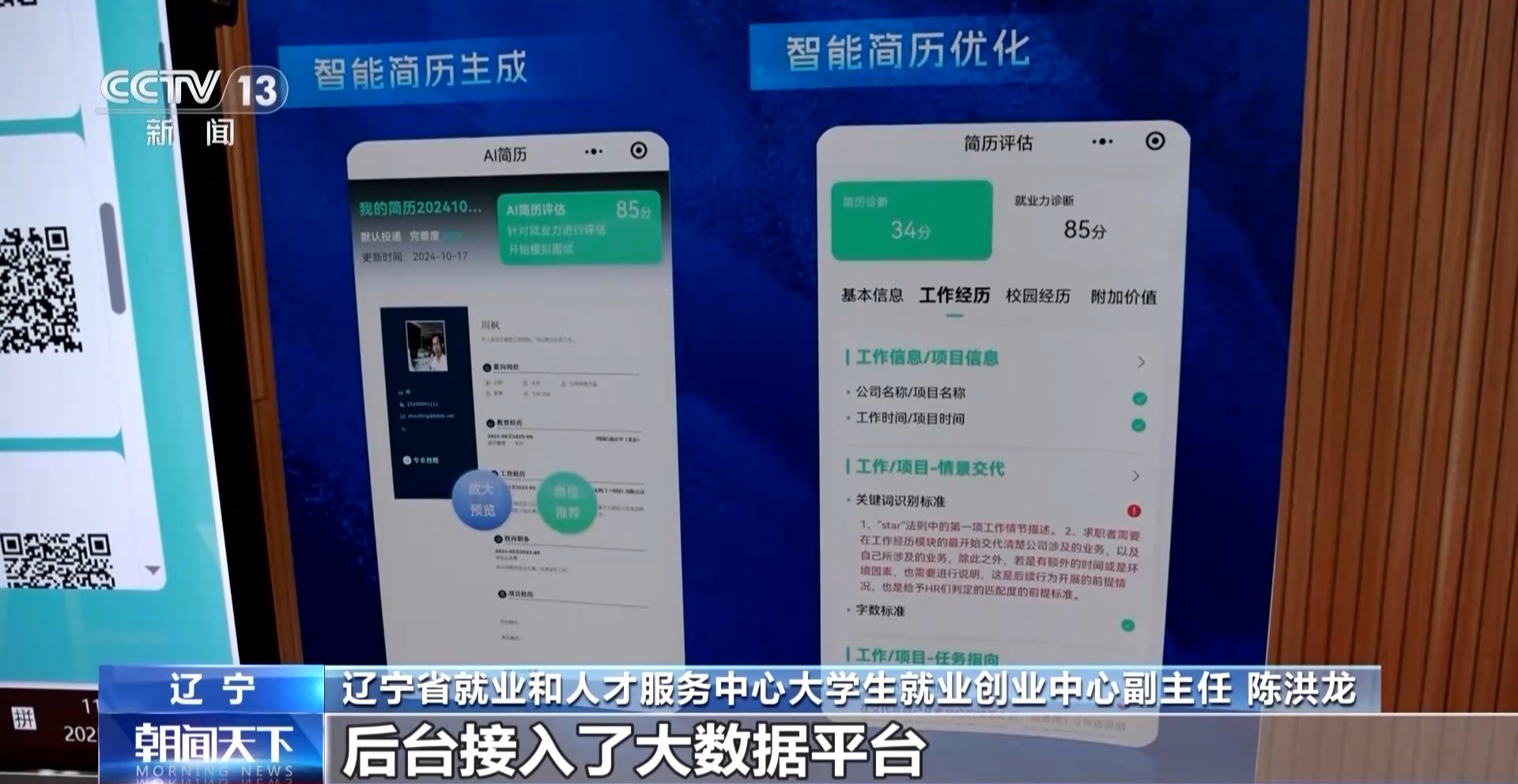 辽宁省就业和人才服务中心大学生就业创业中心副主任 陈洪龙:后台接入了大数据平台,这里面有我们的职业指导师和人力资源的指导数据大模型,优化之后孩子们成功的概率会大大提升。
