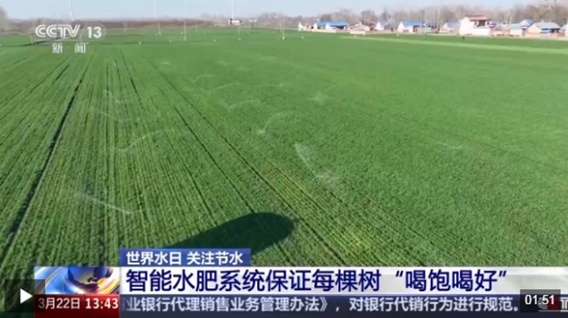同在山西省运城市的万荣县,是著名的苹果产区。智能水肥系统通过密布田垄的滴灌管网,可以精准输送水和养分,让浇地变为浇树,虽然地里看不见水,但是每棵树却都可以“喝饱喝好”。这种春浇模式,让单次浇水的节水效率达到90%左右。