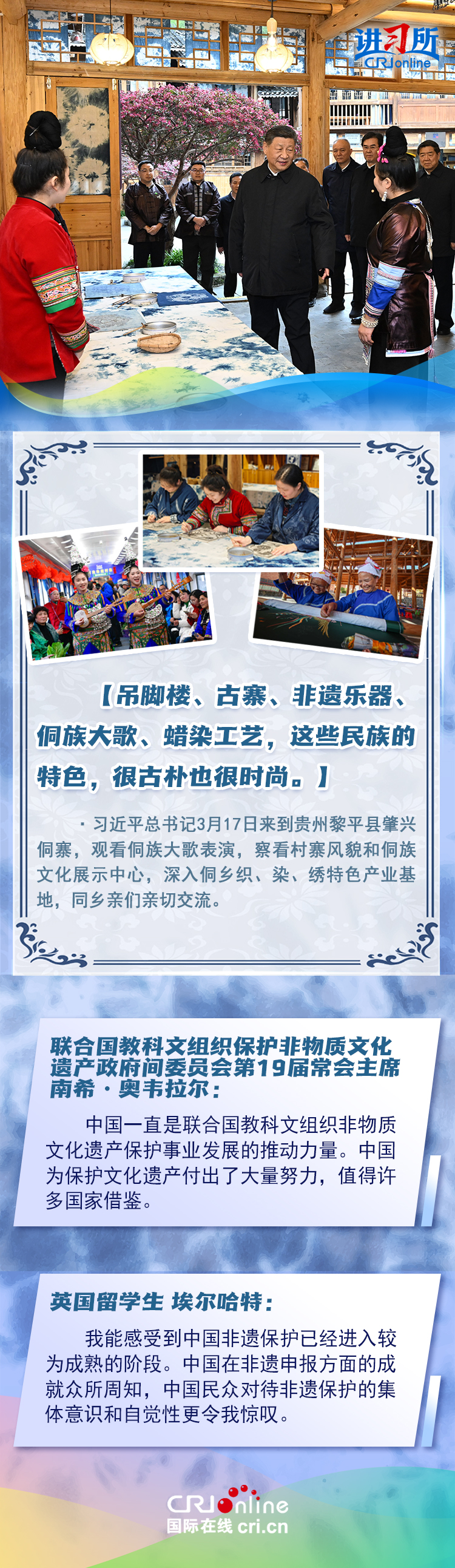 “历史文化遗产不仅生动述说着过去,也深刻影响着当下和未来。”目前,中国列入联合国教科文组织非物质文化遗产项目达到44个,居世界之首,向世人展示出中华优秀传统文化的巨大魅力。而近年来中国持续优化签证政策,“China Travel”让许多国家游客更便捷地来华打卡中国的世界非遗项目,他们看到,作为历史文化遗产保护的典范,中国为全球的遗产保护工作树立了榜样。
