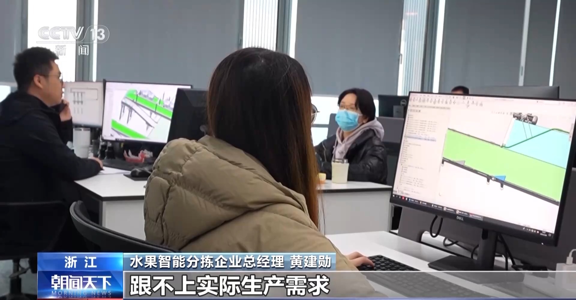 在杭州这家智能化水果分拣企业的办公室里,记者看到一场新研发正在紧张进行。企业年初收到首个海外订单,科研人员都铆足了劲,希望借助此次合作抓住机遇,打开海外市场。