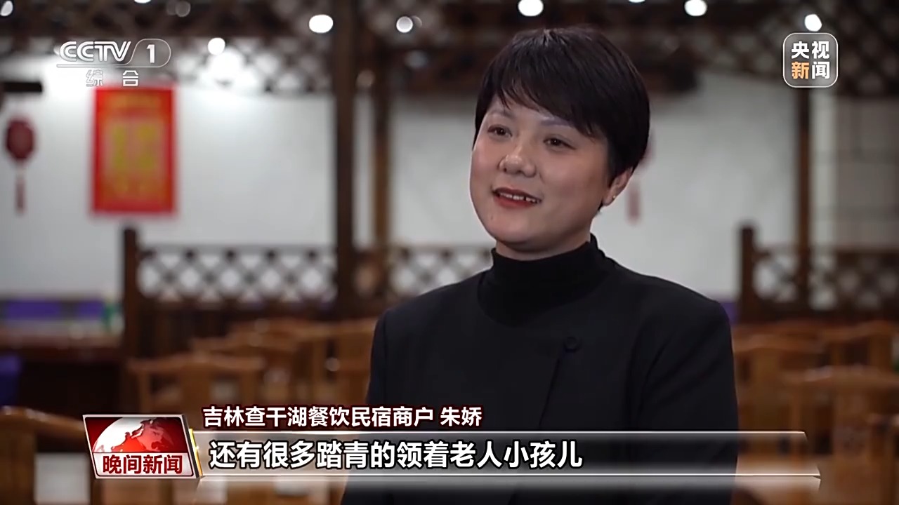 吉林查干湖餐饮民宿商户 朱娇:很多摄影爱好者到查干湖来拍冰面上的候鸟嬉戏,还有很多踏青的领着老人小孩儿到查干湖来游玩,我们的餐饮订单量有所上涨。