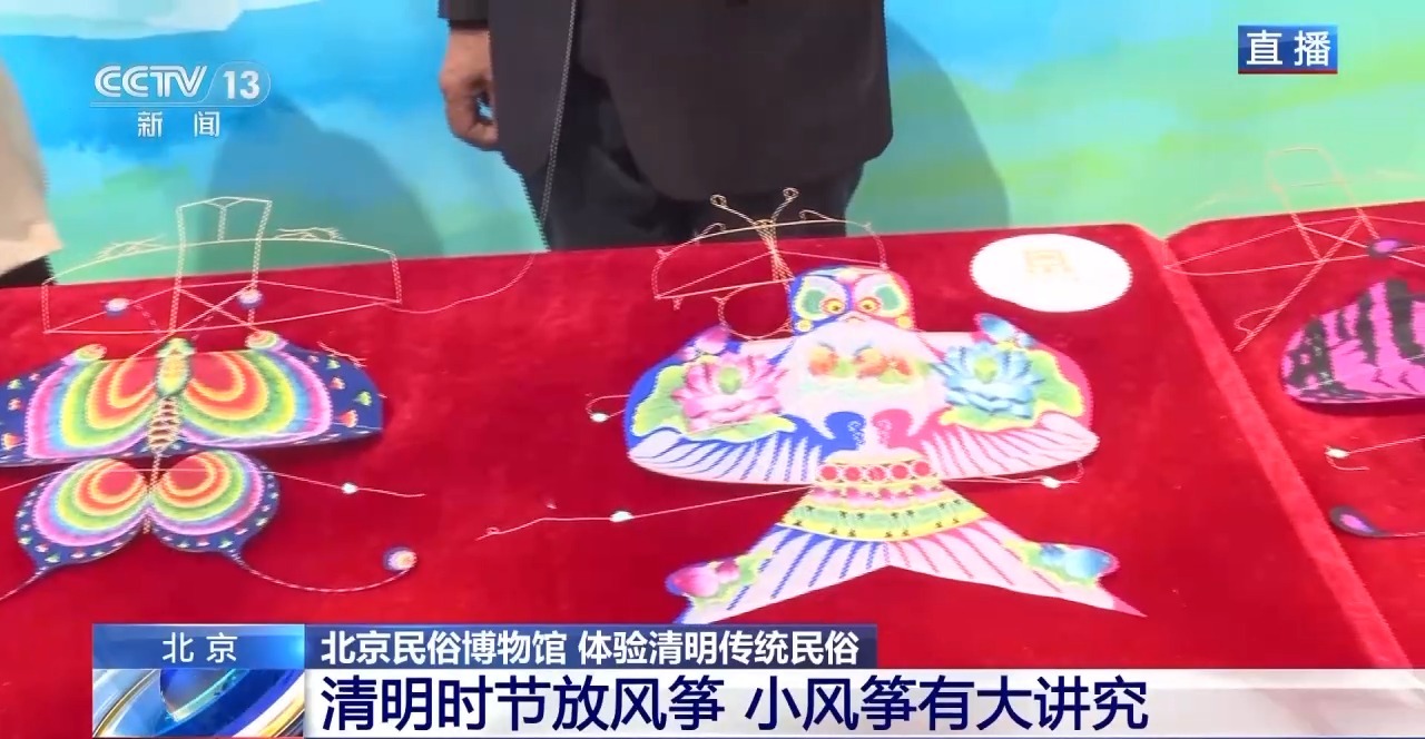 在北方地区还有清明“放风筝祛晦气”的习俗,今天在现场展示的是承载着京韵文化的国家级非遗项目。哈氏风筝传承170多年,最经典的就是燕子形状。传承人告诉记者这种燕子来源于北京雨燕,只有三个爪。风筝中的“瘦燕”象征女性,“胖燕”象征男性,还有“比翼燕”象征夫妻,“雏燕”象征小孩。雨燕的风筝的产生是因为北京风比较大,翅膀采用硬翅。