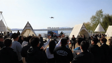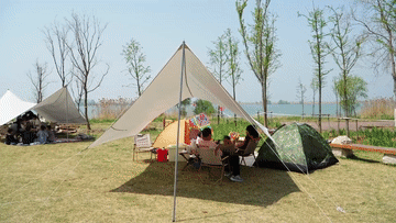 草地上搭建起大大小小的帐篷,沿湖餐厅还推出观景就餐区,人们边品尝咖啡和美食,边欣赏音乐和美景。