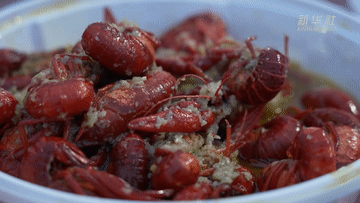 游客石铭恩和家人从安徽到盱眙吃龙虾,“吃了蒜蓉和十三香的龙虾,味道很棒,肉很Q弹,汤的味道也很浓郁,非常好吃。”他说。