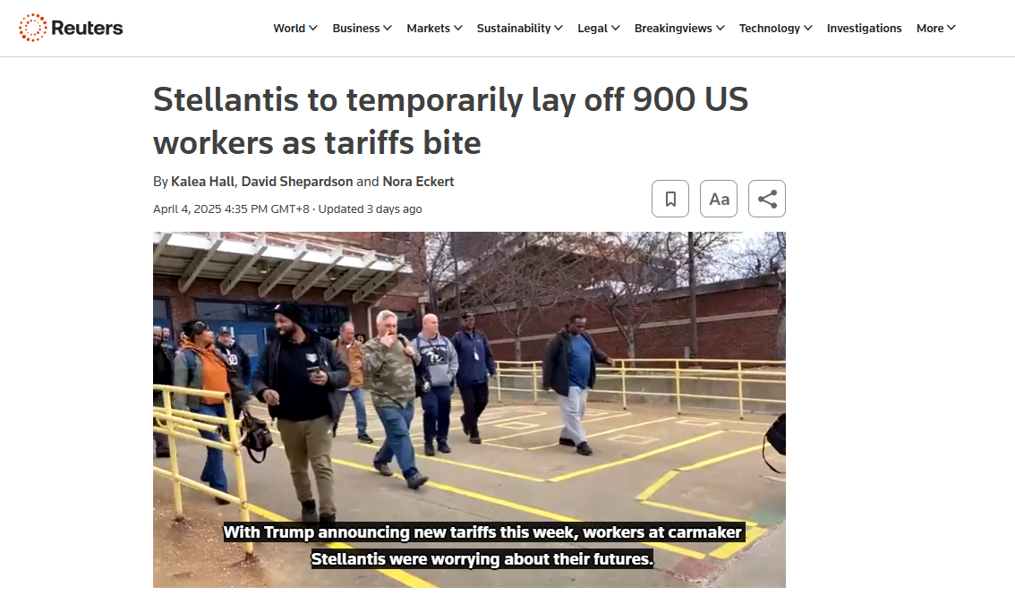 第二条消息来自著名跨国车企斯特兰蒂斯,关键词是“在美裁员”,和在墨西哥加拿大“停产”。