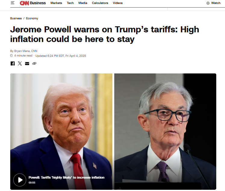 4月4日,美联储主席鲍威尔表示,美国总统特朗普的关税政策可能导致失业率上升,并可能导致通胀上升和经济增长放缓。